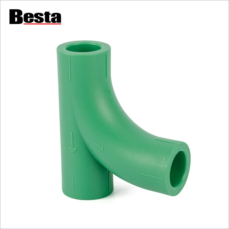 PPR plastist liitmik Y Tee. We have more than 10years experience in water pipe system and we have more than 200sets moulds to produce full range ppr pipe fittings, ball valves, and some other pipe fittings. Besta brand PPR fitting adopts imported raw material RA140E or R200P, and well sell in Africa, Middle east ,South America, Asia etc market. Besta PPR fittings design are very good, surface is perfect, quality is high, price is cheap. if you want to buy PPR pipe or buy PPR fittings from China, we hope our product will be your best choice. and also we are seeking foreign agent, if you want be our agent in your country, you're welcome to discuss with us. PPR Y tee is new product for ppr fitting, similar to PVC Y tee, it has more flow than normal PPR tee, It is called high flow PPR pipe fitting , and very popular at present in the market.